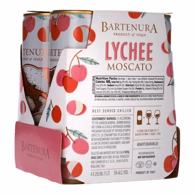 These cans contain a deliciously sweet mix of Bartenura’s gently sparkling Moscato and lychee fruit flavouring, which adds a further floral intensity to the grape, peach and honeysuckle notes of the wine. Perfect for picnics and serving with summer desserts.