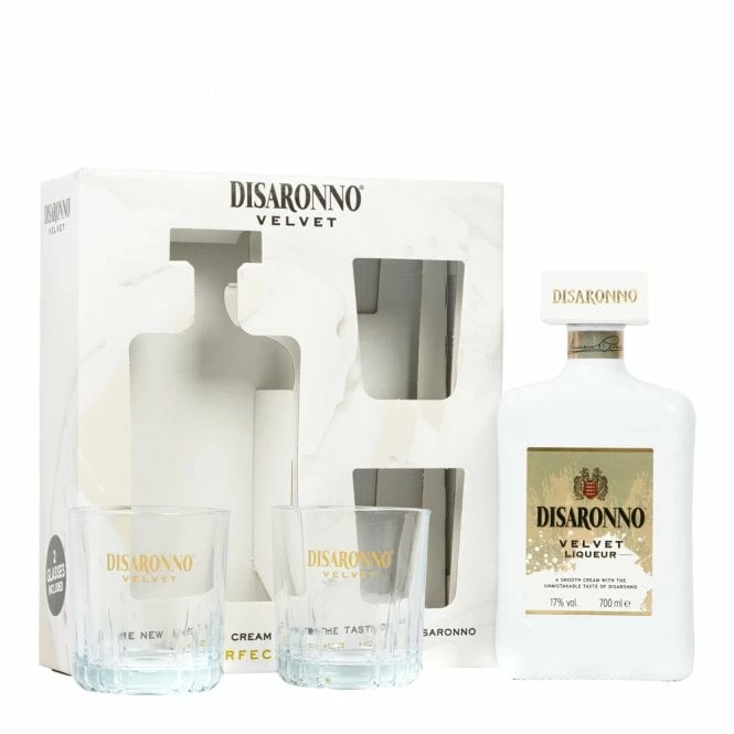 This gift pack includes a bottle of Disaronno ‘Velvet’ cream liqueur and two matching branded glasses. Incredibly smooth and yet unmistakably Disaronno, this makes a fantastic addition to any liquor cabinet. Include it in warming winter cocktails, or serve it straight.