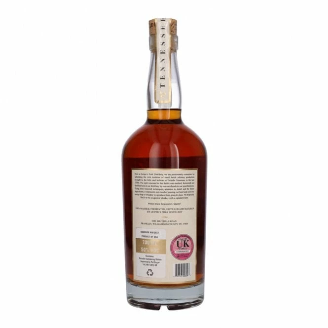 Made at Leiper’s Fork in Frankin County, Tennessee, this is a pot-still bourbon made with a mash bill of 70% Corn, 15% Wheat and 15% Malted Barley. Bottled in Bond means that this five year old bourbon is the product of one harvest and it has been mashed, fermented, distilled, aged and bottled all on the distillery site.